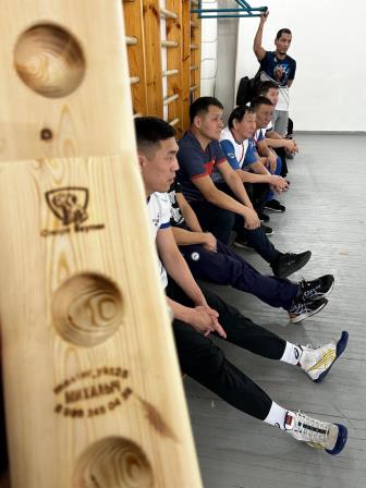 Сивцев Дьулустан Николаевич, тренер по вольной борьбе провел мастер класс об использования техники национального вида спорта «Тутум эргиир» в тренировочном процессе. «Борцовский мост» — одно из основополагающих положений в борьбе, использование «Тутум эргиир» — не только помогает «качать мост», но вносит в тренировочный процесс соревновательный момент — кто больше сделает переворотов за определенное время, кто сможет сделать перевороты в обратном направлении. Использование этого элемента в тренировках — это не только ОФП, но и хорошая возможность развития вестибулярного аппарата юных спортсменов. Дьулустан Николаевич продемонстрировал необычный для «Тутум эргиир» инвентарь — с разноуровневыми углублениями для палки, что позволяет детям постепенно переходить сверху вниз.