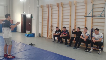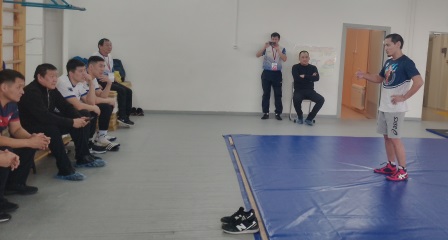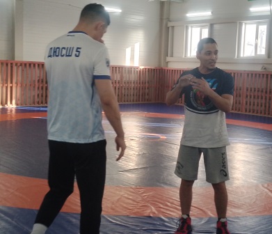 Свой мастер класс провел выпускник ДЮСШ №5 Карамзин Айтал Дмитриевич, ныне тренер ДЮСШ №10 по вольной борьбе. Он раскрыл свои некоторые секреты, рассказал свое видение техники прохода в ноги и действий после захвата ноги соперника.